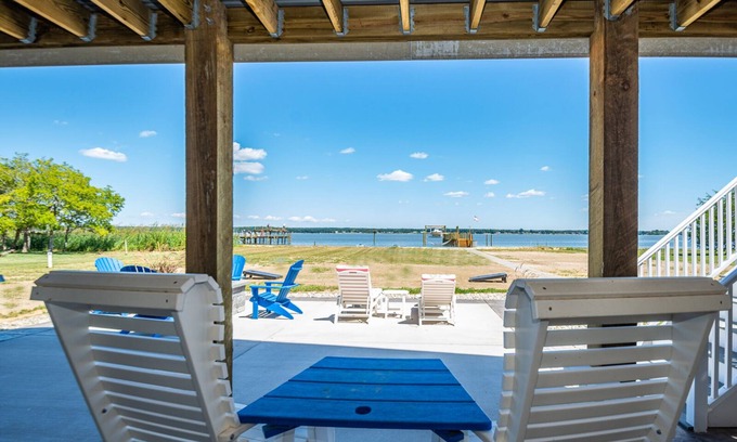 Enjoy the RIVAH life like never before in our brand-new construction, luxury house. We have it all right here! A 150' pier for epic fishing, commercial Mega Slam basketball hoop, 3000 SF of concrete patio with gas firepit, huge private beach, tons of yard space and spectacular sunrises!