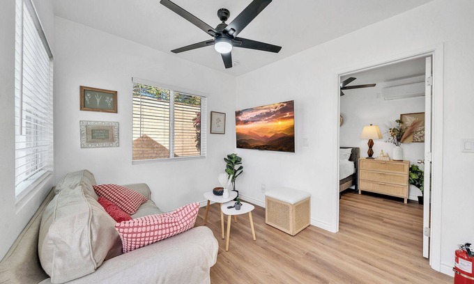 Enjoy high-speed wifi, a fully equipped kitchen, dishwasher, washer/dryer, AC, and TV - all in a stylish and modern space. Conveniently located just minutes from San Bernardino downtown, NOS Event Center, and Yaamava Casino. Perfect for couples, solo travelers, or business stays!