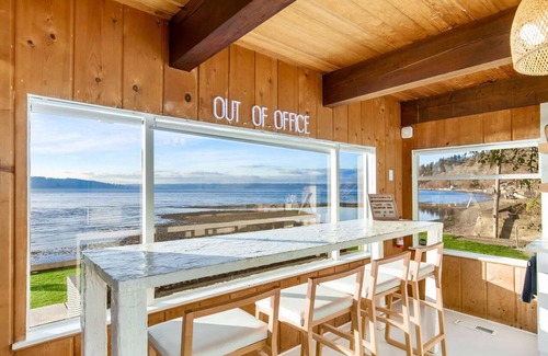 Oceanfront Getaway Bliss. 20 min from Seattle. Feel worlds from it all. Wake + fall asleep to the sound of the waves from your memory foam bed. Let baby seal greetings delight you, the retreat’s intentionally curated design refresh you or Sunrise+Sunset over the Sound take your breath away from your spot at the dining table, sofa, kitchen (w/coffee, tea+anything needed for a delicious meal), outdoor gas FIREPIT, fire table, GRILL or inflatable HOT TUB. At high+low tide, you’ll be rejuvenated.