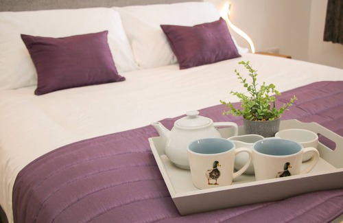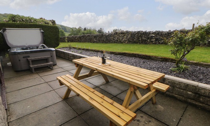 Amenities: Gas central heating. Electric oven, induction hob, microwave, fridge/freezer, washing machine and dishwasher. TV, WiFi. Fuel and power inc. in rent. Bed linen and towels inc. in rent. Off-road parking. Enclosed garden with lawned area, patio and hot tub. Sorry, no smoking. Shop 4.1 miles, pub 0.3 miles. Note: Property accessed via owner's private lane. Note: There is a garage to store bikes. Note: No stag or hen parties accepted at the property. Please note: The hot tub is emptied at every guest over, it may not be up to temperature for use on the first night. This property accepts check-ins on Monday's and Fridays only.