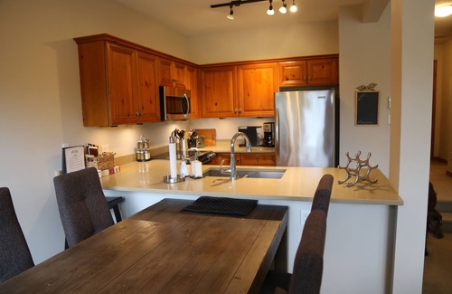 Nestle in after a day on the mountain in this cozy, ski-in / ski-out mountain side get away. This two bedroom townhome offers convenient access to the Blackcomb Mountain Wizard Chair. It is just steps from front door to Merlins Run (just walk to end of Painted Cliff complex).
