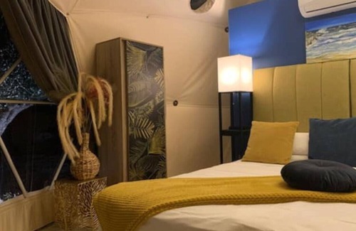 Wake up to the sound of the countryside in our brand new Geodesic Dome (First in Rhodes) It's right in the middle of an olive grove but only a few steps to the beautiful beach