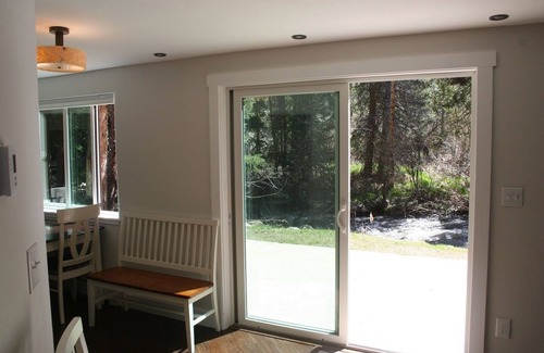 It just doesn't get any better than this! Gorgeous and unique ground-level walkout ranch on the Fraser river. We are the largest and only custom three bedroom 'suite' in the complex. Modern 100% custom 1600 sq. ft. condo decked out with hand-scraped hickory floors, concrete counter tops, oiled rubbed bronze fixtures and stainless appliances. Never run out of hot water with our high end instant heat boiler. Radiant heat for total indoor comfort. Plenty of room for two families with all the modern amenities. Three bedroom, two bath sleeps 8-10. At the base of the Winter Park Ski Resort... walk to the lifts and village. Or take the 30 second free shuttle ride to the resort that picks you up right out front. Lightly used community hot tub & sauna literally steps away. Park right at the back door! Hop on the Fraser river trail a half block away and enjoy the scenery on the gorgeous two mile paved path to downtown. In the winter take the free shuttle that picks up right out front and go to dinner, the new Fraser rec center or just about anywhere else.