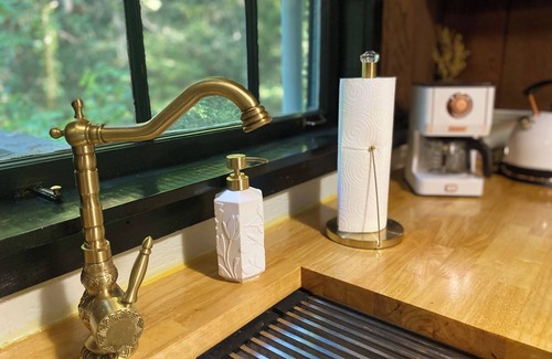 A creek meanders through the property, adding to the peaceful ambiance. Surrounded by towering redwoods, offering privacy and a deep connection to nature. Ideal for couples, solo travelers, or anyone seeking a serene escape from the everyday.