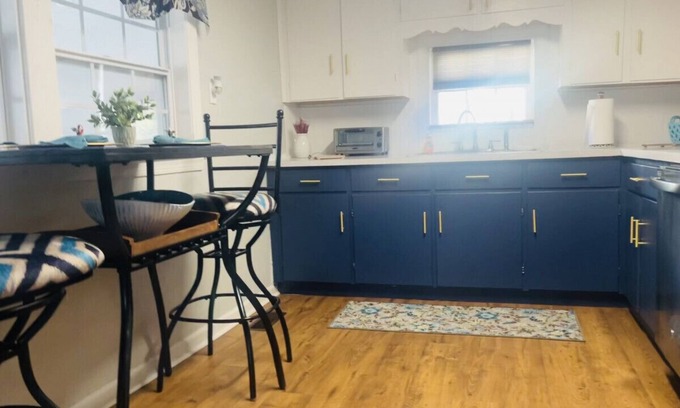 As you arrive at our property, enjoy a step free entrance with keyless entry into your private oasis, and admire the modern and trendy decor of this cute 2 bedroom 2 bath vacation rental home, which is perfect for 2 couples or a group of 5, (with the pull out sofa in the living room) making it the ideal getaway to enjoy your next holiday.