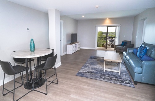 Enjoy a stylish new build condo on Canandaigua Lake. Spacious 1,457 sq ft. condo features 1 king bed in the primary room and 1 queen bed in the 2nd bedroom. Open concept space takes you through the full kitchen featuring full size appliances, table for 4 into the spacious living room which features sofa, and an over sized chair. You receive access to Hotel Canandaigua's pool, fitness center, restaurant and bars.