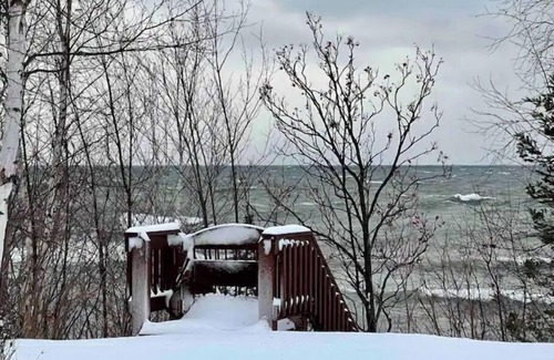 Relax with the whole family at this peaceful large lakefront retreat. Spectacular Panoramic vies and incredible sunsets await! Boating, kayaking, fishing, snow skiing, and snowmobiling are just some of the activities that await. 5 minutes from Calumet on Lake Superior with private beach access. Across the street from Gardeners Creek Nature Trails, close to Sweedetown recreation area and near snowmobile trail access 17 and 3.