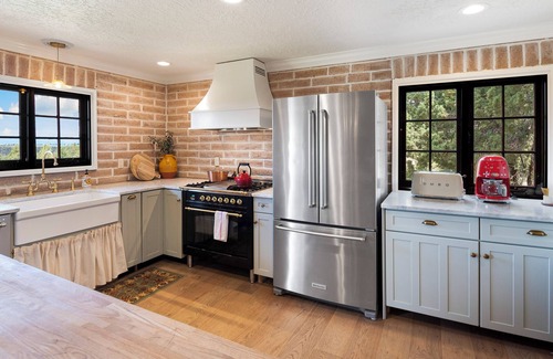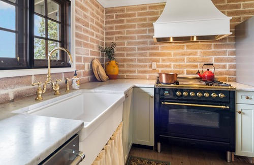 *Kitchen fully equipped w/ Italian gas range w/custom hood, marble counters, copper cookware, Kitchen-Aid & SMEG appliances, pottery dishes, tricked out coffee bar & island seating