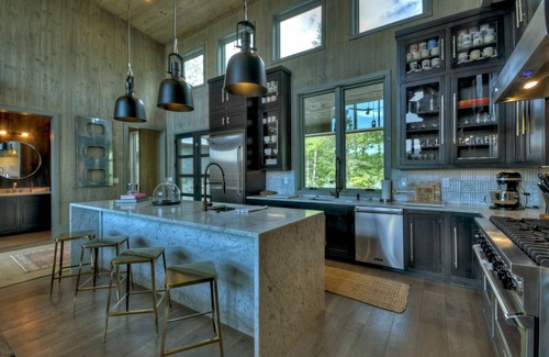 Just when you think it can't get any better, take a short walk (or drive) down the hill to the pool house. Feel like you are staying at a high end resort in the middle of the woods. A heated pool and spa greet you as soon as you turn the corner. Don't think this is your average "Pool House", nothing was overlooked when designing this home. Whether you are admiring the pool and outdoor fireplace from the front or admiring the treetops from the side and rear, glass is EVERYWHERE! Perfect for a couple or small family with a King size bed and full bathroom. Completely self sufficient from the main house with its own full equipped high end kitchen and full laundry facility.
