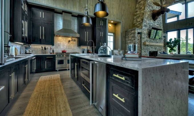 The attention to detail and luxury continues back inside the house! Enjoy listening to your favorite music on the whole house (both indoors and outdoors) Sono's based audio system or catch your favorite movie or sports team on the smart tv in the living room. Snuggle up in front of the vastness of the floor to ceiling stone fireplace. No need to fuss with hauling wood into the house as you just need to simply push a button to start it!