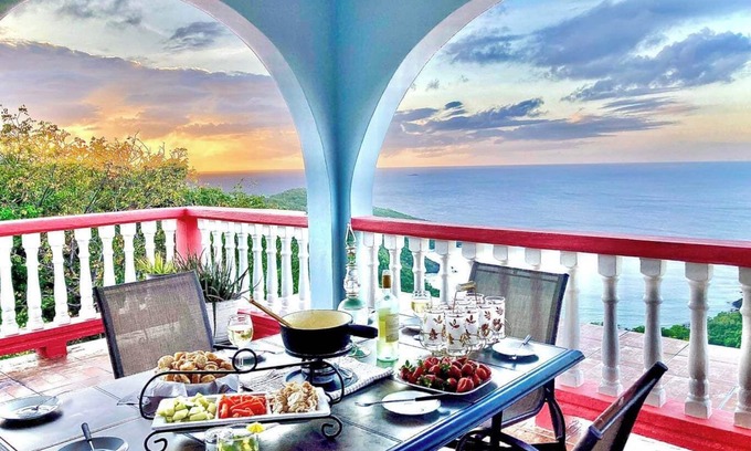 Perched above Santa Maria beach on the cool & tropical west end of St. Thomas, sits Mango Cove Villa. The perfect oasis to sit back & relax in total privacy. The views & colors of the ocean & lush green hillsides will mesmerize by day & the colors of the sunset will impress in the evenings.