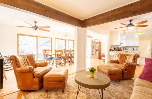 Say hello to your perfect vacation home! Bright and airy Woodstock home with all the amenities you will need. Located only 2 minutes from the Village of Woodstock. Five-bedroom house w/3 full bathrooms located on private roadway perfect for walking & running around neighborhood. The house features heated salt-water in ground pool, Hot-Tub, 2000sf outdoor deck with BBQ grill, fire pit, and large tranquil garden with privacy, Wood pellets burning fireplace.