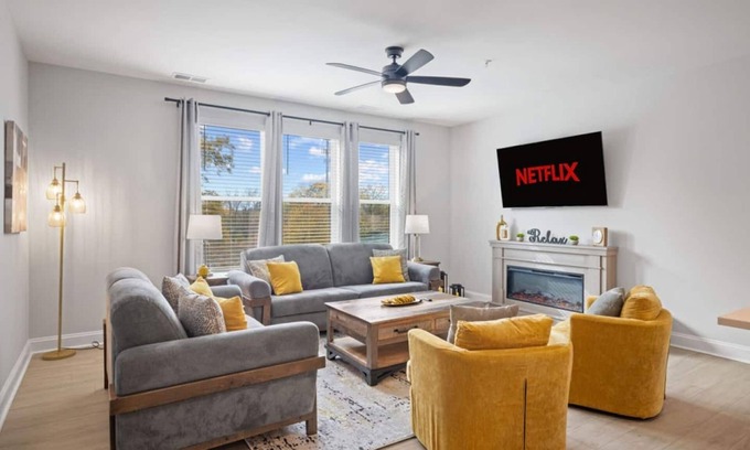 NEW Luxury Condo, Rooftop Terrace, EV Charger! is located in Wake Forest. NEW Luxury Condo, Rooftop Terrace, EV Charger! provides accommodation, featuring Fireplace/Heating, Kitchen, Laundry, among other amenities. This Condo features Fireplace/Heating, Kitchen, Laundry, to make your stay a comfortable one.