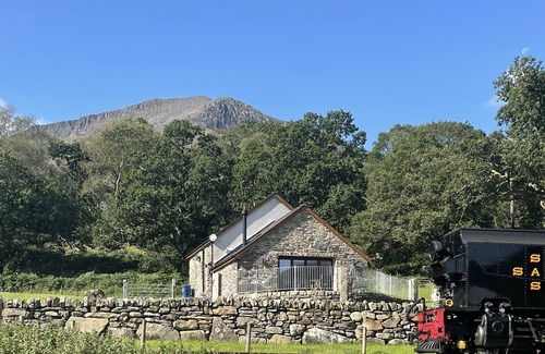Derwen Fach is a newly converted barn at the foot of Moel Hebog. The cottage is situated on a 2000 acer mountain farm in the heart of Snowdonia, with the Welsh Highland railway steam train right on the doorstep.