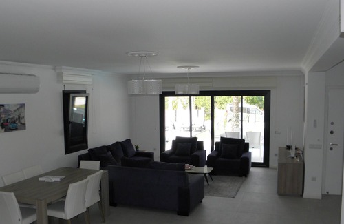 Every room is fitted with air conditioning and the kitchen is well equipped with built-in hob, extractor, oven, dishwasher, washing machine and fridge freezer. It also has all the essential utensils for cooking as well as kettle, toaster and a water cooler for fresh drinking. There is an alarm system installed, plus a safe, with free wireless connection, TV and DVD player in the living room, plus a TV in the master bedroom. Towels are available for both the bathroom and sun loungers and there are games, books and DVDs stocked for all ages.