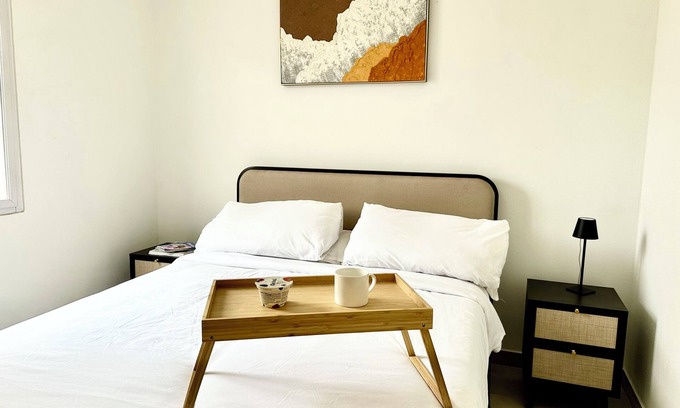 This cozy 1-bedroom apartment boasts a fully equipped kitchen, ideal for whipping up delicious meals. The living room features a sleek TV, perfect for unwinding after a long day. With modern furnishings and a spacious layout, it offers a comfortable retreat for solo living or a couple's getaway.