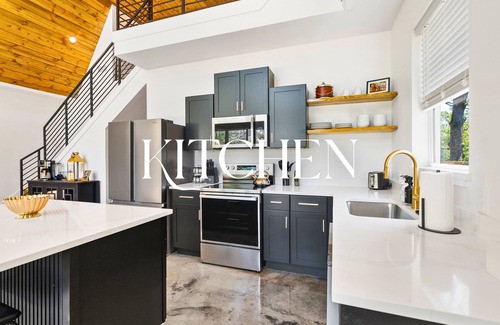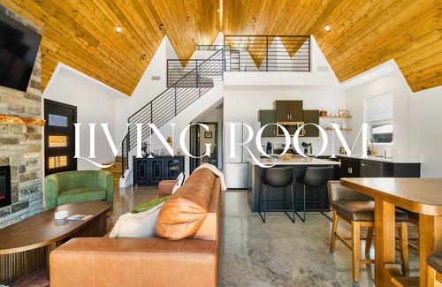 Settle into mountain life at Jockey, a modern A-frame tucked among the trees in scenic Hot Springs, Arkansas. This thoughtfully designed cabin blends rustic charm with clean, contemporary finishes, creating a space that’s both stylish and welcoming. With two king bedrooms and a loft that includes a queen mattress in the upper nook and a queen sleeper sofa below, there’s plenty of room for couples, families, or small groups to relax and recharge. Two full bathrooms, a fully equipped kitchen, and a cozy living area with vaulted ceilings and a fireplace round out the inviting interior.