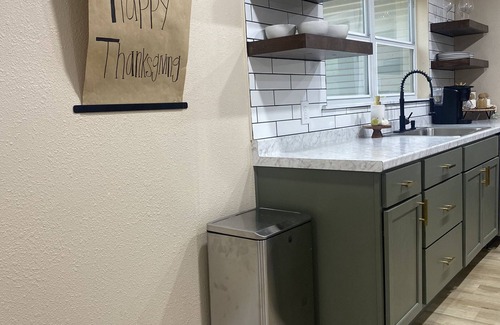 Our newly renovated home is perfect for so many different occasions. We can host an entire family with kids, couples, or a group of friends. It has an open concept with French doors that open right up to the back deck that’s perfect for entertaining.