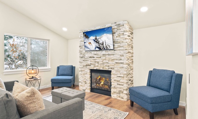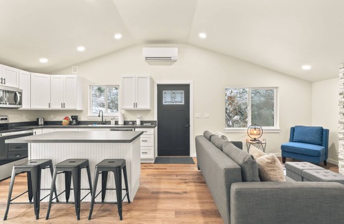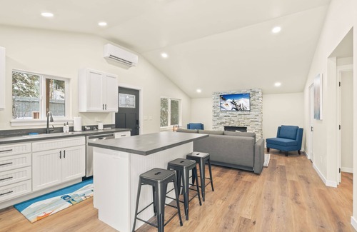 Fall asleep to the sound of the Tieton River in this brand new modern cabin just minutes to White Pass, Rimrock Lake, and Clear Lake. Year round activities include snow skiing, snowboarding, snowshoeing, cross country skiing, fishing, hiking, kayaking, boating, paddle boarding, white water rafting, and wine/beer tasting in the beautiful Yakima Valley. Mount Rainier is only 45 minutes away offering mulltiple hiking opportuities and amazing views. Relax in front of the firepit located on our our beach complete with paver patio or wind down in the "Bull Room," complete with bar, wood stove, pool table, shuffle board, and darts. The game room has a wood stove but no heat, so can be chilly in the winter. Need more space? Rent out our cabin next door that sleeps 6.