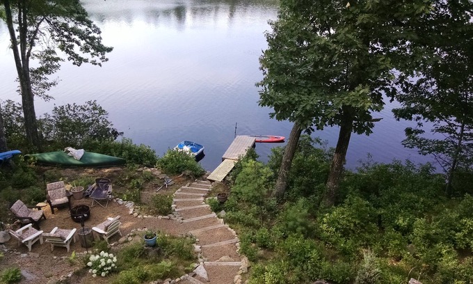 Swim, paddle, and enjoy the outdoor decks and firepit at this secluded NH getaway. A canoe, 2 kayaks, 2 paddle boards, a pedal boat, and a variety of floats are available for use, as well as fishing gear.