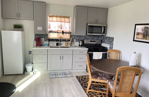 This studio is fully new construction which located in a very quiet cul de sac. It attached to the main house in one side and isn’t contiguous to any neighbor. Our cozy cottage is small, making it perfect for solo travelers or couples who work or take vacation in this area. The home includes a queen bed, A/C & heating unit, Wi-Fi, full kitchen with all cookware and brand new appliances, full bathroom, big closet with mirror door, plush linens, shampoo/conditioner/body wash, and keyless entry.