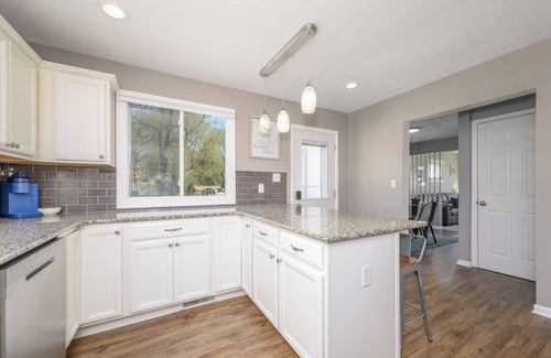 Newly remodeled and private home with a backyard oasis in Portage Lakes! Enjoy beautiful water views in a nice quiet location but also close to everything! This home accommodates up to 6 guests and features 3 bedrooms, an open living room, dining area, fully stocked kitchen, work station, high speed internet, cable, smart TV’s, all new furniture, washer, dryer, and more!