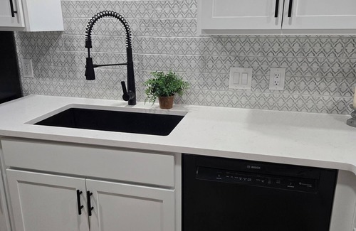 -Fully-equipped kitchen w/fridge, freezer, dishwasher, oven, stovetop, microwave, toaster, coffee maker