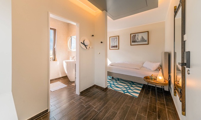 Our harbor bunk offers space for 2 guests in a cozy room. Let the sun wake you up in the morning, brew a fresh coffee with your Nespresso machine and enjoy the silence. With the calming view over the expanse of the lake you can fill up enough energy for your active day on and maybe also on the water.