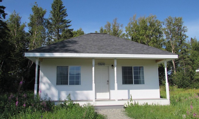We are located near the Alaska State Fair Grounds, outside city limits in the farm area. These New Bungalows have an unobstructed view of Pioneer Peak, that showcases amazing sunsets. Each Bungalow Sleeps 2, max. with a Queen Bed and a *American Leather* Tempur-pedic , No Bar- pull out sleeper. All bungalows have a kitchen area, counter with 2 bar stools and full bathroom. Amenities Include: Free Wifi, Coffee Maker, Dishes/Silverware, Fridge/freezer, Inductive Heating Plate, Pots and Pans, 40” Flat Screen With Netflix