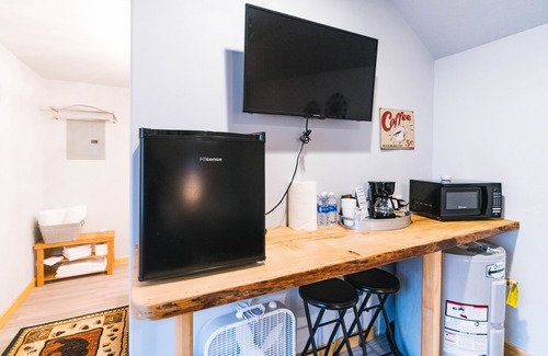 The cabins are 375 square feet and have nice bathrooms, microwave, mini fridge and coffee pot. you also get a hair dryer and their are no shared walls. The Cabins are new and quite nice. you have 2 fire pits and 2 barbecues and a picnic table in a nice clean and quite setting. Only 10 minutes from Talkeetna and all the fun things to do in between. Cache cabins are only 2 hours from Anchorage on the way to Denali state park, their are several places to eat and all services are within 1 mile. Hope to see you soon, happy trails!