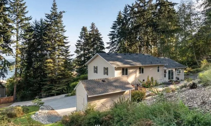 Located just two miles from downtown Coupeville, nestled amongst trees and with a view of Penn Cove and community beach access, this private island getaway feels a world away from city and work. Start your morning with breakfast on the front deck with views of the water and spend your day beachcombing, hiking, and exploring all the natural wonders of this 57-mile island. Your soul will thank you.