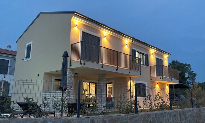 New villa for 8 people in Višnjan near Poreč is located in Farini. New villa for 8 people in Višnjan near Poreč provides accommodation, featuring Air Conditioner, Security/Safety, Fireplace/Heating, among other amenities. This Villa features Air Conditioner, Security/Safety, Fireplace/Heating, to make your stay a comfortable one.