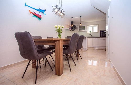 The stone villa Lucky Dream is suitable for 8 people, set in a small, village of Gata, surrounded by beautiful nature. Gata village is located below the Mosor mountain, and only 7km away from the sea. The Dalmatian stone houses, the streets and the rich history of the village and its surroundings will ensure our guests a complete escape from stressful and busy everyday life. Two shops are in the village, the nearest shop is only 400m away, bar 1km , bus station 400m. Long roads and paths through the nature are perfect for walks and cycling and the mountain of Mosor will take care of the perfect mountaineering adventure. Beautiful sandy and stone pebbles beaches are only 7km away. The best choice for a night out would be the town Omiš with a rich offer of restaurants and bars, summer amenities such as Pirates nights, various festivals and events ..