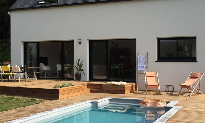This new house with heated pool will seduce you with its exposure (south), its proximity to the beach and the sailing school (200 m).