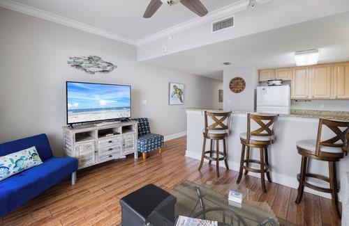 This unit sleeps 5 with the use of a Queen sized bed, a brand new sleeper sofa and a brand new sleeper chair. This resort is the perfect gathering spot for small families, couples, or friends. The extra large pool deck and outdoor kitchen make a great spot to create family memories you will always cherish. The Intracoastal waterway here is a beautiful waterway and the calmer water offers a great place to enjoy every kind of watersport. Local fishermen know there is a honey hole off the end of the dock!