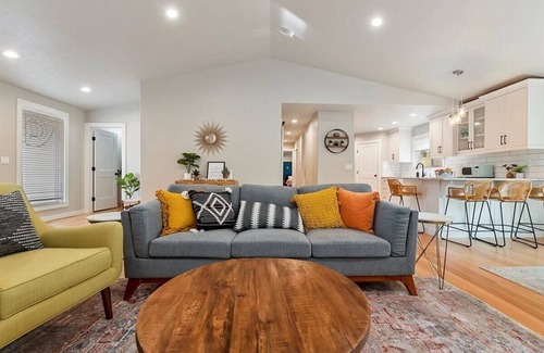 A stylish experience at this centrally-located west Boise house. Close to everything, The Village is only a 4 minute drive and downtown Boise is 15 minutes or less. This new home has all the amenities and is decorated stylishly. 3 Bedroom + Game Room featuring cocktail arcade games with all the classics. Unwind next to mature trees and relax in the brand new hot tub. Enjoy 3 Smart TV's, R.O water system, washer/dryer, 2 King Beds and a Double Trundle Bed. This house has every high end upgrade.
