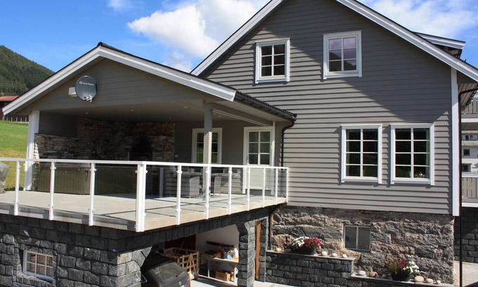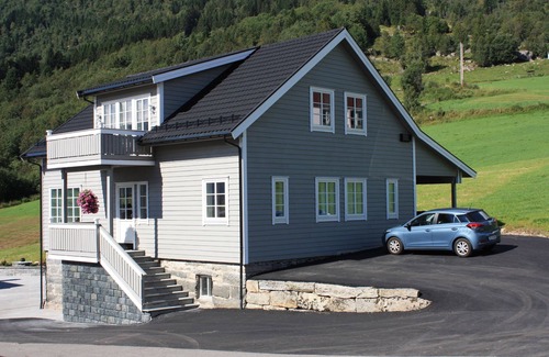 This beautiful house extends for over 200 sq.m, including a 70-sq.m terrace, and invites you to relax in comfortable surrounds in the stunning Viksdalen Valley. There are wonderful fishing spots in the Gaular River; we offer a boat on Lake Viksdalsvatnet. Fossestien's waymarked paths provide many different mountain trails. In the evening, you can lounge on the terrace with its 7-seat Jacuzzi, gas barbecue, and garden furniture. The house, sleeping nine guests, offers large, high-quality beds, two washing machines, two dishwashers, a tumble-dryer, a 46" LED TV, Internet access, most kitchenware, and a 10-seat dining table.