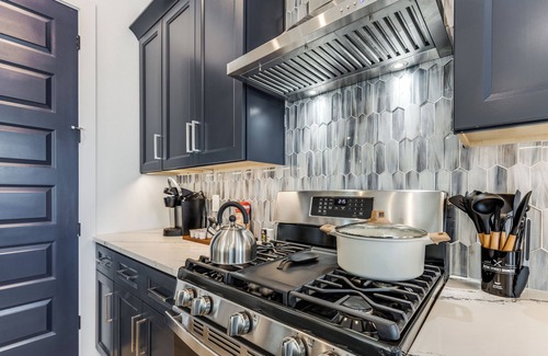 The home has a gated front yard area and includes garage parking for up to two vehicles. Enjoy the specatular views from our second floor balcony and enjoy the sights and sounds of the City (The Union Pacific train passes a block away). Designed for high-end taste in mind, this home will be a dream stay for you and your guests. Each of our four bedrooms has a 50 inch Smart TV. The home includes Fast WiFi and two work-stations. Weekly and Monthly Discounts. Pet Friendly.