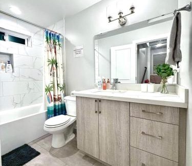 Newly built home, ample parking, near SEA Airport is located in Tukwila, just 10 miles from Lumen Field and 12 miles from Space Needle. This vacation home offers free private parking, a shared kitchen, and free Wifi. The accommodation features full-day security and a shared lounge for guests. The air-conditioned vacation home also provides a flat-screen TV, a fully equipped kitchen with a microwave, a seating area, washing machine, and 3 bathrooms with a walk-in shower and a bath. The accommodation is non-smoking. Tiger Mountain State Forest is 19 miles from the vacation home, while Seward Park is 6.2 miles away. King County International Airport is 2.5 miles from the property.