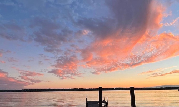 Located on the Northern bay of Cayuga Lake. Breathtaking sunset views with fantastic fishing. You can fish right off the dock or bring your boat for full access to this 38 mile long lake-Ice fish in the winter just a few miles from our location. Pleasure boating is prevalent in the warmer months-we are within a mile of the Sandbar and approx. 7 miles from the "Cove" in Union Springs. House is located within minutes of wineries & restaurants. Less than 7 miles from Casino, 10 miles from Premium Outlets & 15 miles from the Spa at the Inns of Aurora. Outdoor fire pit & indoor wood burning fireplace. Bamboo hardwood floors throughout the house. Remodeled bathrooms & kitchen. Stainless steel appliances. Brand new outdoor deck with gas grill overlooks the Lake. Wildlife abounds with fish, birds(Osprey, Cranes, Eagles) frequently seen. Great family get away on Cayuga Lake with tremendous views of Sunset Bay. Cayuga Lake is an incredible two-story fishing lake that supports bass, pike and panfish in its weedy shallows, as well as several species of trout and salmon in its colder depths.