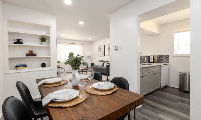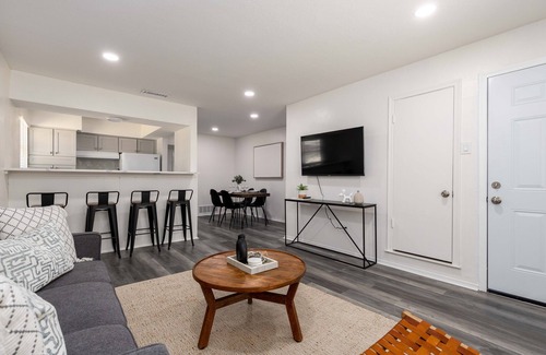 New listing special - book now for low rates! Enjoy a stylish experience at this centrally-located place. This unit was designed with comfort and a taste of modern look in mind. Rest on the queen plush mattress at the end of day, watch your favorites shows on the 50" smart TV, enjoy the quietness of the surrounding community. Fully equipped kitchen for day-to-day cooking. Property ideal for Traveling nurses or Executives in Dallas.