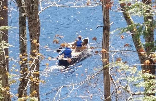 Beautiful views, peace and serenity await you at this gorgeous waterfront retreat. Every space in this home has been custom designed by the owner and has been lovingly renovated by local craftsmen. Since the roads down to the lake are private, and there is no public access boat launch near here, there's always plenty of undisturbed wildlife - lots of birds in the trees, lots of fish in the lake, lots of critters in the woods - and yes we have LAKE LOONS all season. They come and fish here every morning around the dock - it's very fun to watch!!