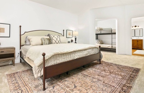 On the main floor you fill find two spacious bedrooms. One with a king bed, and the other with a queen bed with an additional twin over full bunk bed. A full bath is conveniently located right between these two bedrooms for easy guest access.