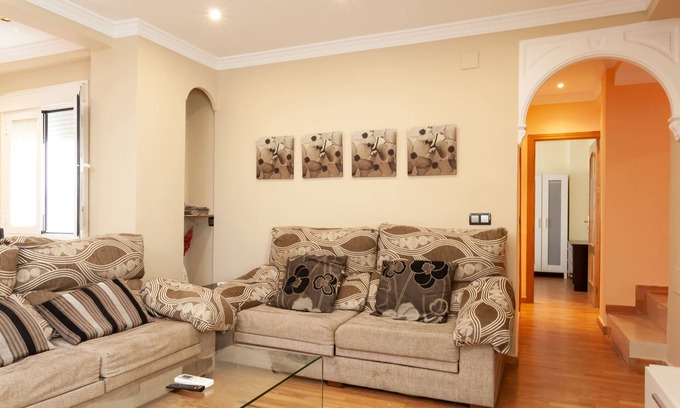 VTF / MA / 10407 - Spacious and modern housing, next to the Center of Malaga. Ideal for families with children and groups. Within walking distance of Alameda Principal, Calle Larios, Museums, etc., and next to the bus stop to the center and the beaches of La Malagueta and El Palo in 10 or 15 minutes for € 1.30. Shops in the immediate vicinity. The house is fully equipped, air-conditioned rooms. Kitchen with all appliances and appliances. New bathrooms, one with whirlpool bath and one with ample shower.