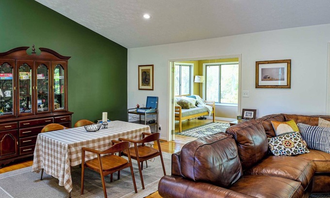Guests will experience privacy and tranquility amidst Kentucky fields and woods. White Oak Point is a working farm that has been in the Clore family for over 200 years. Current farm operations include pastures for hay and an apiary with 20 beehives. Guests may arrange with the host to visit the apiary. You may also arrange to hike trails through the farm's wooded acres. A portion of the farm acreage is also leased to neighbors at Woodland Farm for their pasture-raised American Bison—you may see bison grazing on your way in!