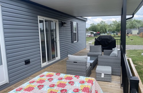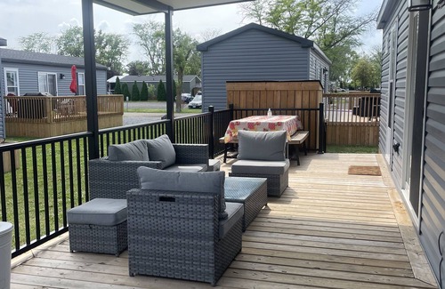 Modern Trailer Home VineRidge Resort Niagara on the lake 3 bedrooms sleeps 6 salt water pool, 1 acre Pool, basketball courts, tennis court. Close to falls. Wine tasting tours, historical Niagara on the lake. Fort George, Casino mins away #niagarafalls there is a 200$ refundable security deposit upon checking in