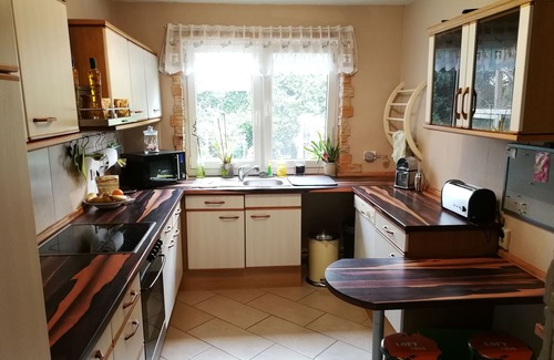 Here can get on 100sqm up to 9 people in 5 bedrooms their sleep from the extraordinary day. The 5th Room is the living room with sofa bed for 2 persons. Upstairs is a bathroom with toilet and a balcony with privacy. On the ground floor is the bathroom with shower, a beautiful south-facing terrace for the whole family. A very lovingly equipped kitchen and dining room and living room.