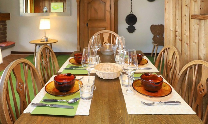 The apartment has a large kitchenette that is well-equipped with an oven, dishwasher, toaster, kettle, electric coffee machine, raclette grill, and a fondue set (chinoise and cheese). The bathroom features a shower and toilet. Additionally, you'll have access to a balcony spanning 10 square meters, facing both south and east, with balcony furniture provided. Other amenities include an iron, hair dryer, and free WiFi internet access. A garage space (number 118) is available at the house for your convenience.