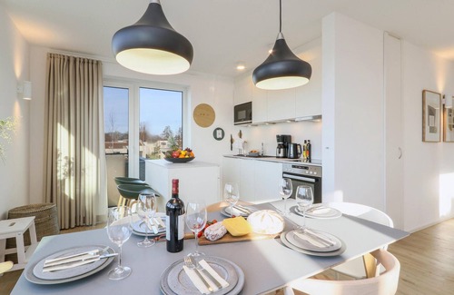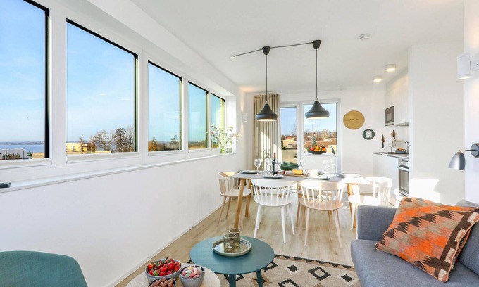 Welcome to your flat, which offers a cosy, homely ambience with Scandinavian design furnishings for up to 6 people. You can get some fresh air on the balcony. In the open-plan kitchen, you can cook any recipe for friends or family.