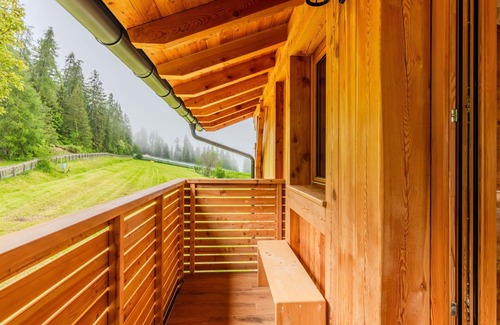 Villa "Casa del Larice" comprises two apartments within the property. Guests can avail of weekly linen and towel changes (supplementary charges apply), as well as room cleaning services upon request (extra charges). Convenient amenities such as storage rooms for bicycles and skis are also available on-site.